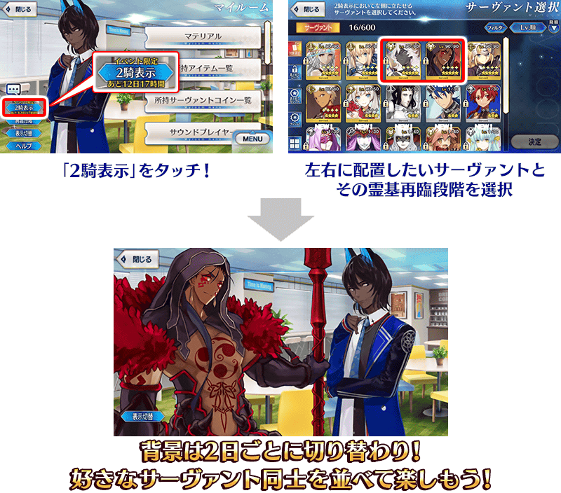- During the event, you can set 2 Servants as My Room's Servants