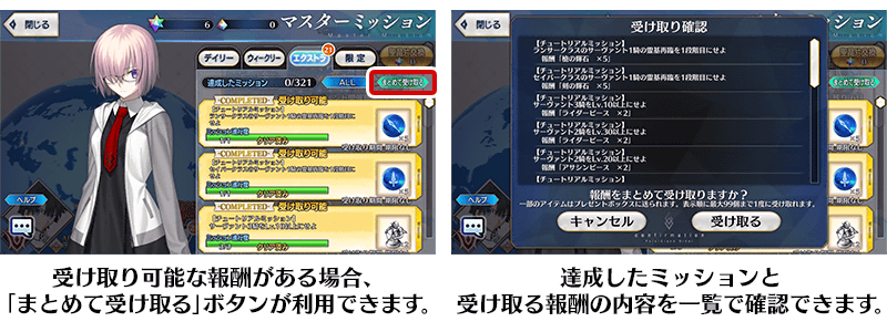 *Instead of manually collecting each mission's rewards, you can now receive them all at once