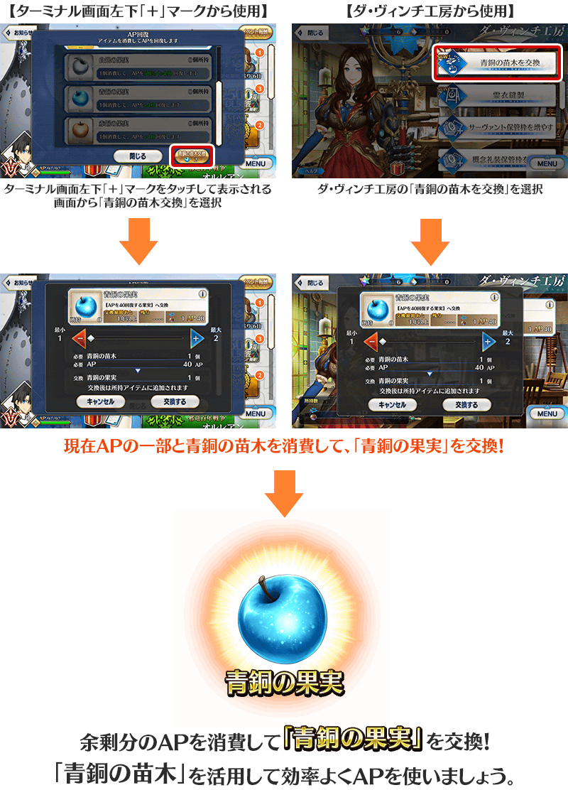 - Click the Exchange (交換する??) Button to create Bronze Apple(s)