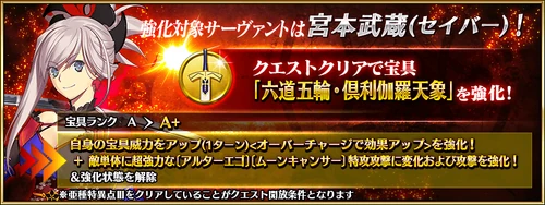 - You can only use the NPC Miyamoto Musashi as support Servant and she must be placed on the front line.