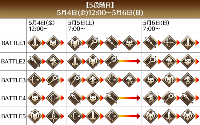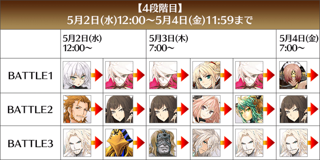 - Battles will be release in 5 stages, from the start of the event until 6th of May.
