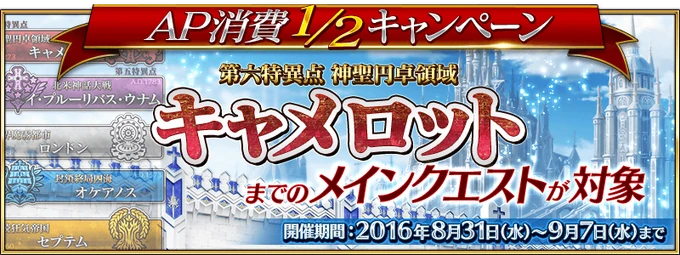 All Main Quests cost 1/2 AP! *This applies to Main Quests only. Interlude and Free Quest costs are unaffected.