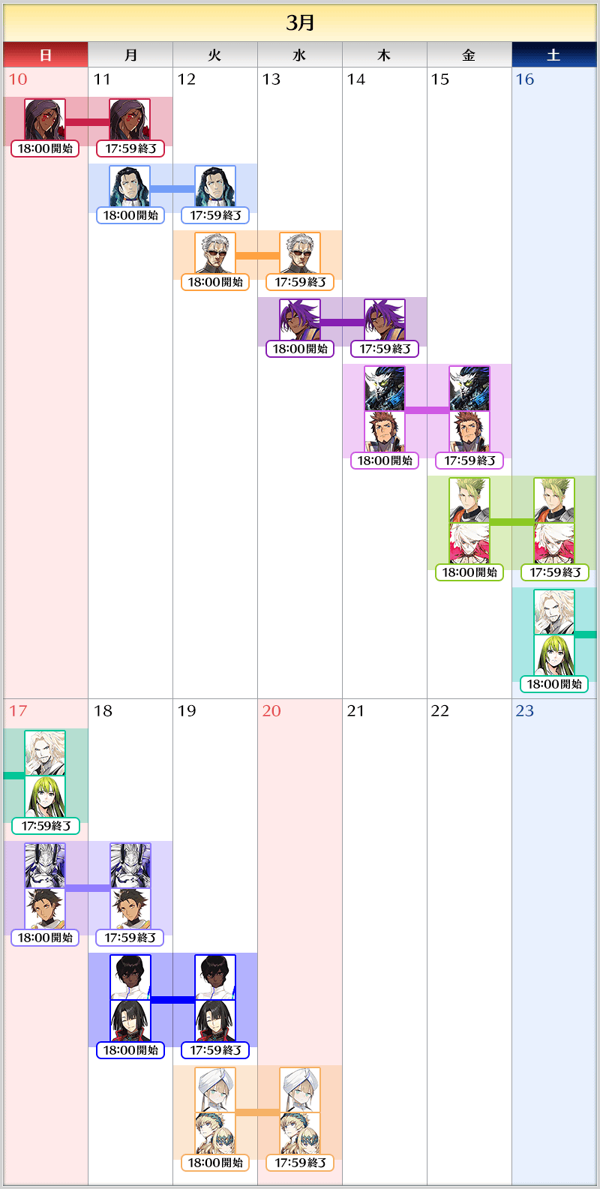 - Summoning banners for each Servant are separated, even if their duration overlaps, thus, they have:
