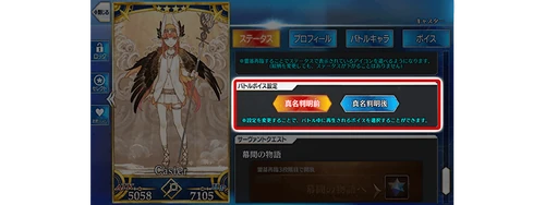 - Servants with both True Name and Hidden Name/Titles will have a new customization option for battle voice to use the "True Name unlocked version" or the "Hidden Name version"