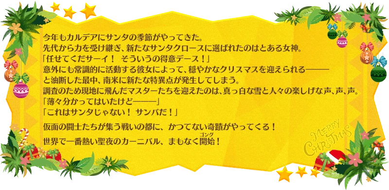 - Clear the Main quest event to unlock the shop exchange for Quetzalcoatl (Samba/Santa)'s permanent copy and her other copies.