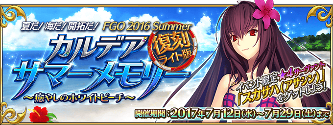 Event Title: It's Summer! It's the Beach! It's Adventure! FGO 2016 Summer Chaldea Summer Memories ~White Beach of Solace~ Re-Run Lite Ver.