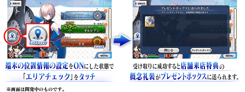 - Visit any of the stores from the following locations above, and login from your F/GO app then click the "Check Area" button to redeem your Craft Essence.