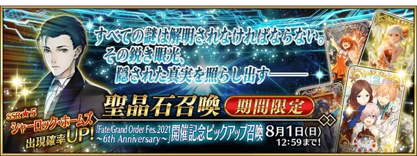 特別召喚 (Special Summon??), as of August 1, 19:00 JST, all players who have cleared Fuyuki are eligible to obtain 1 SSR (out of a pool of 32 Servants) free of charge, with no strings attached.