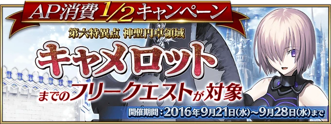 - All Free Quests in Fuyuki, Orleans, Septem, Okeanos, London, E Pluribus Unum and Camelot will have reduced AP cost (1/2).