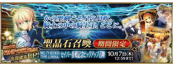 - A video of Saber's gameplay in MELTY BLOOD: TYPE LUMINA will be shown before the quest starts.