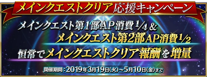 Extended Duration: March 19, 2019 18:00 ~ May 10, 2019 12:59 JST