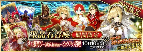 Rate Up Servants on 28 Sept 2016 17:00 JST - 10 Oct 2016 23:59 JST: