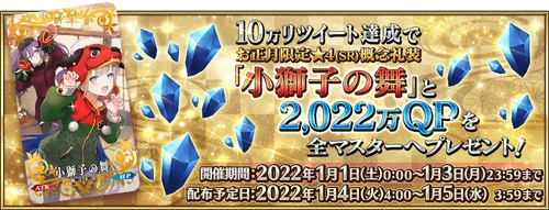 | ALL Ember Gathering & Training Field Quests 1/2 AP | January 1, 2022 00:00 ~ January 10, 2022 12:59 JST |