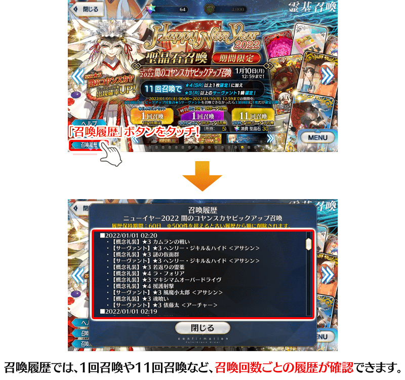 - A Summon History has been added to the Summoning Screen, allowing you to check the results of your past summons