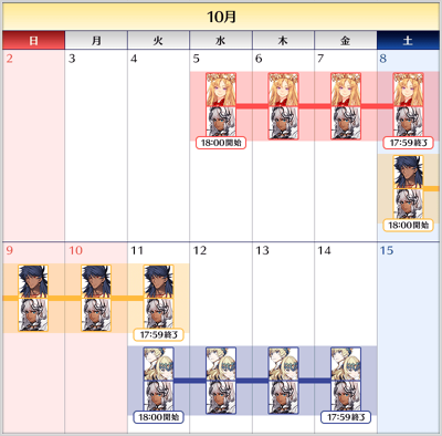 | October 5, 18:00 ~ October 8, 17:59 JST | |