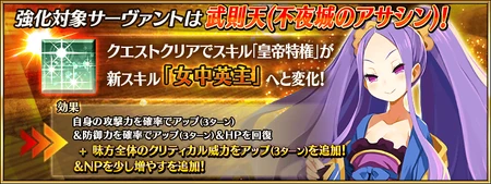 - Taisui Xingjun "Tell Us! Tell Us!" (「きかせてきかせてー!」??) charges Child Guardian's NP Gauge by 3 ticks