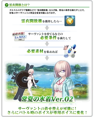 | Mashu Kyrielight: Swimsuit of Perpetual Summer Ver.02 | Lanling Wang: Eastern Socialite Attire |