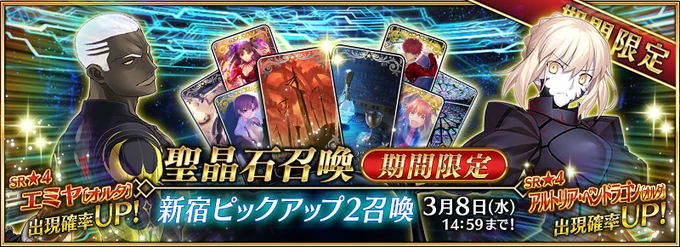 - Summoning Rates For EMIYA (Alter) and Artoria Pendragon (Alter) Will Be Increased During This Event.