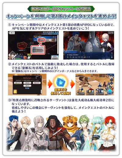 - During the campaign, the following Servants have 2x Chance to get Great/Super Success Rate when Leveling.