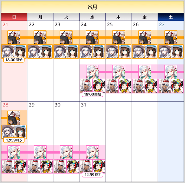 | August 21, 18:00 ~ August 28, 12:59 JST | |